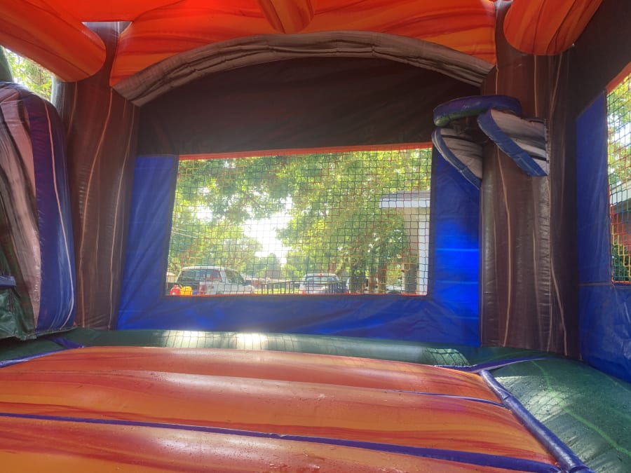 Welcome to Inflatafuns Tropical Rainforest water slide bounce house Combo! This unisex unit features 3D palm trees, dual lane water slides with a large splash pad landing. The inside features a basket ball hoop and bright colors for all. We deliver the fun for all ages and occasions. This one of a kind tropical water slide/ bounce house can be delivered to Carlsbad NM, Loving NM, Malaga NM. Book online with us today!