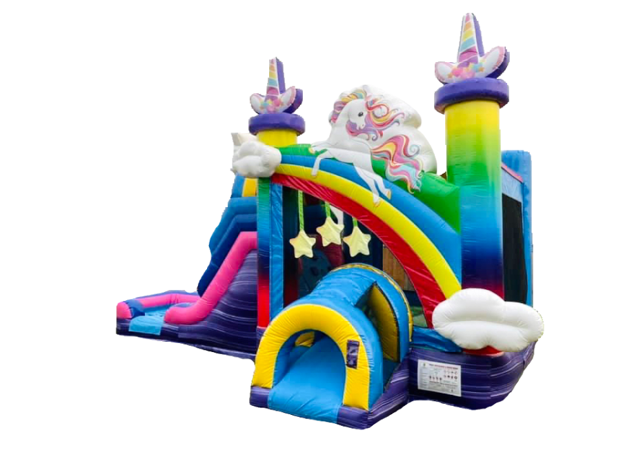 ¡No te pierdas una de las últimas incorporaciones de Inflatafuns, el Combo de la casa de rebote con tobogán de agua de unicornio! ¡Esta casa de rebote de unicornio seguramente alegrará el día de tus pequeños! Cuenta con colores brillantes, ventanas emergentes en 3D, un gran unicornio en el frente y en la parte superior del tobogán y luces centelleantes para agregar ese toque especial y hacer que su día sea tan mágico como debería ser. Esta casa de rebote de unicornio también tiene un tobogán de agua adjunto que se puede usar en seco durante los tiempos más fríos. Entregamos la diversión para todas las edades y ocasiones. Este combo inflable de tobogán de agua de casa de rebote de unicornio se puede entregar en Carlsbad NM, Loving NM, Malaga NM. Reserve en línea con nosotros hoy!