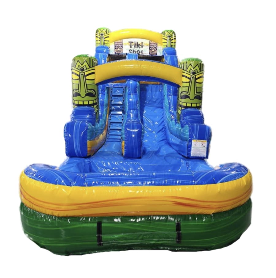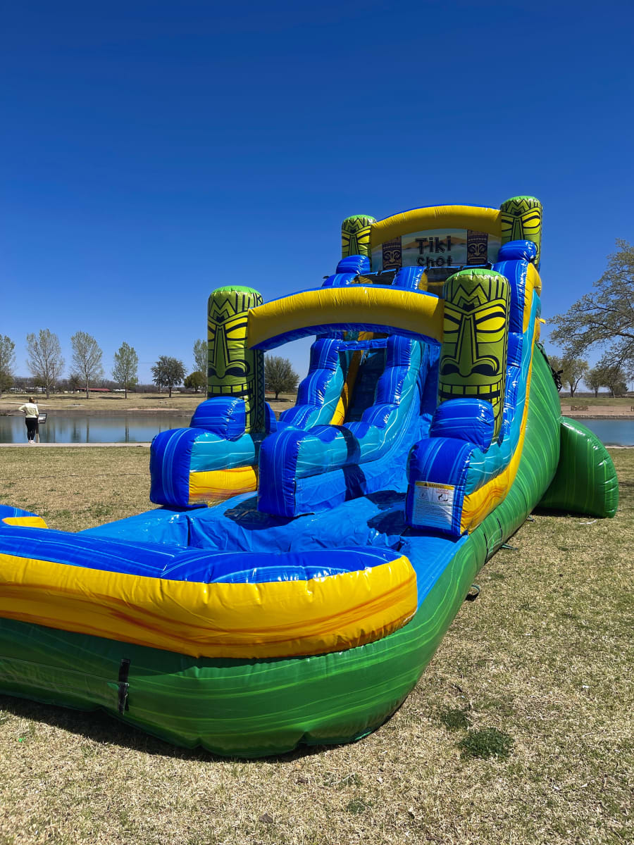 It's TIKI TIME! This vibrant colored water slide is tiki themed and perfect for your backyard party or large event. The wide slide is perfect for all ages including adults. It features beautiful and vibrant marbled colors and large landing pool. From your oldest to youngest everyone is sure to have a blast on this fun waterslide! Inflatafun delivers the fun for all ages and occasions. This waterslide can be delivered to Carlsbad NM, Loving NM, Malaga NM. Book online with us today!